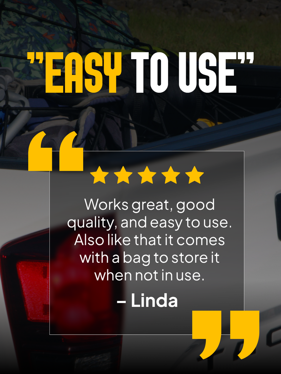 At TacoNets™, we pride ourselves on making a strong and efficient product that gets the job done. Whether you’re hauling equipment or groceries, packing up for a weekend getaway, or just need help moving, our dependable TacoNets™ are there for you with a lifetime warranty.