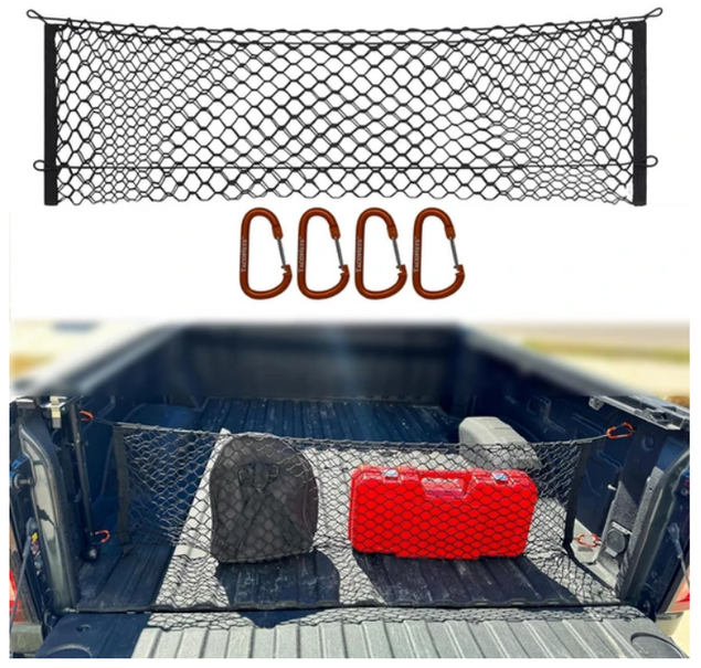TacoNets Truck Bed Cargo Net Upgraded 5mm Bungee, 4 Carabiners, & Mesh Pouch